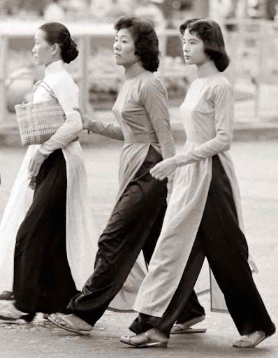 Trong nhiều thập kỉ trước, không chỉ riêng dịp Tết mà cả trong đời sống thường nhật, áo dài cổ truyền vẫn là trang phục truyền thống gần gũi và gắn bó với người dân Việt. Có chăng trong những ngày Tết, người ta sắm thêm cho mình một bộ áo dài mới nhiều màu sắc sặc sỡ cho Tết thêm sung túc và may mắn.